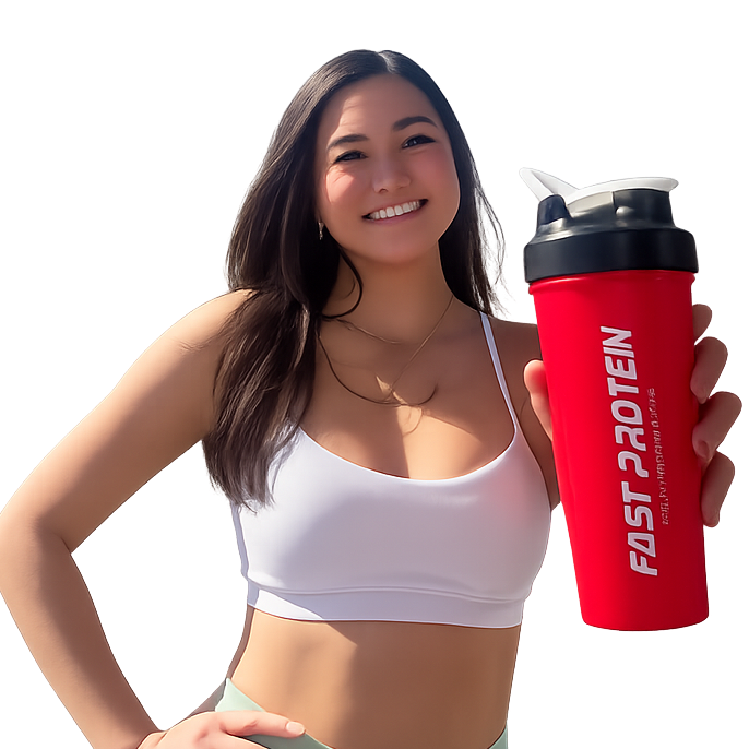 Protein Shaker Bottle by Fast Protein. BPA-FREE Fitness Shaker 600ML BPA-Free. Purchase with our Unflavored Protein Powder Includes a mixer steel ball for easy mixing. The screw-on lid creates a leak-proof seal, and the flip cap snaps securely shut to keep content spill-free. The protein shaker bottle is a Loop top for easy carrying or attaching keys/backpack. The protein shaker bottle fitness cup is 600 ML/20 oz - Mix 3 scoops of Fast Protein Powder with filtered water and uses it all day.